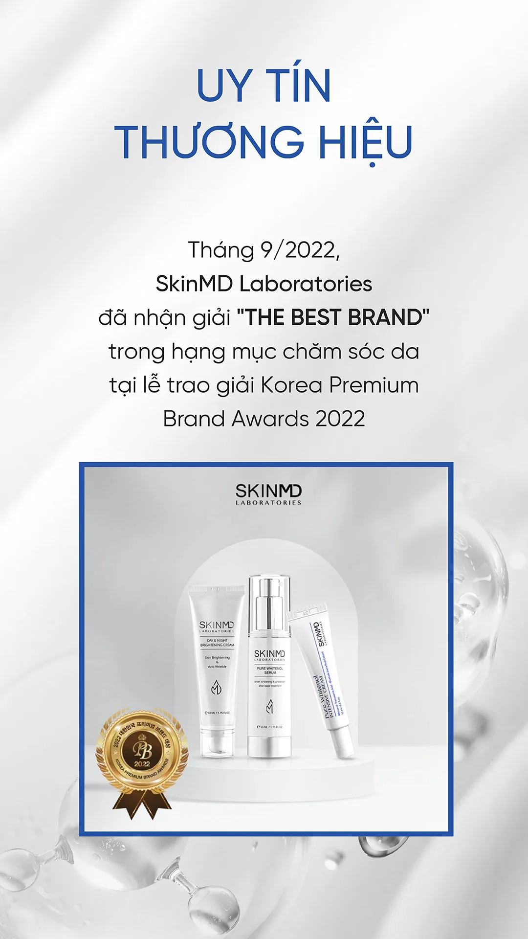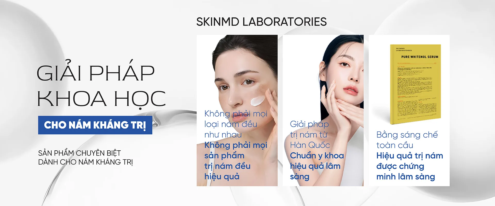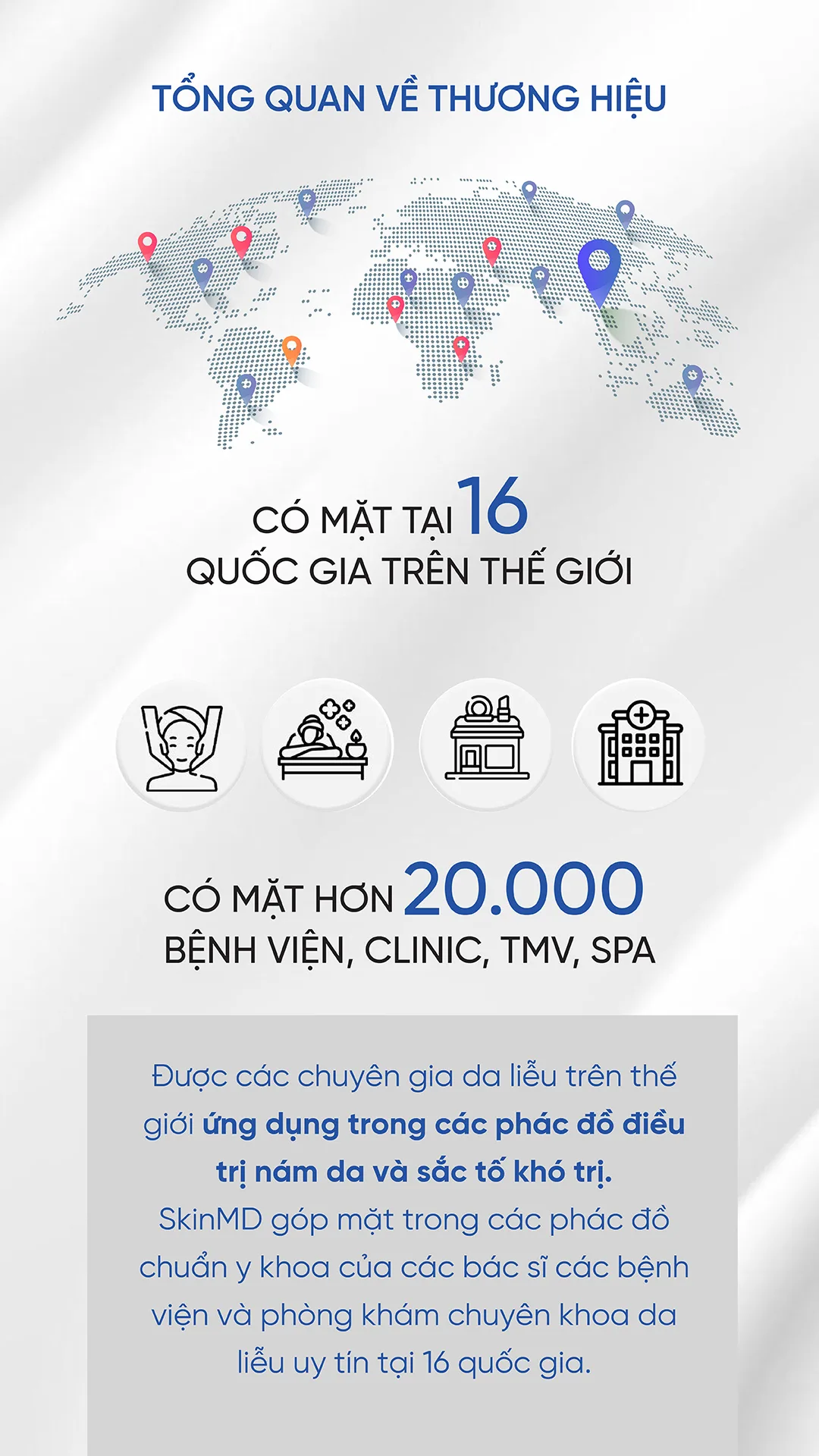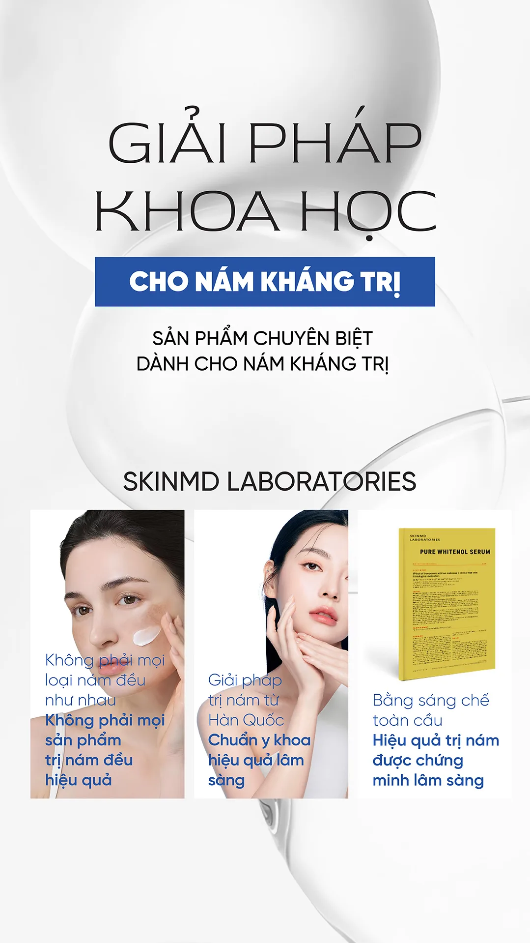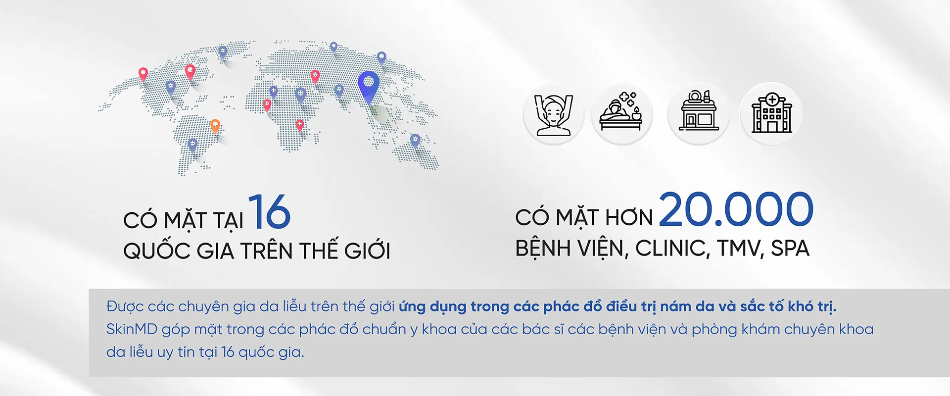 Từ phòng lab của SkinMD, bằng bí quyết nghiên cứu, đội ngũ giáo sư, chuyên gia da liễu không ngừng đầu tư vào công nghệ khoa học làn da, phát triển công thức chứa các thành phần hoạt chất mới chiết xuất tự nhiên an toàn, đưa ra kết quả nghiên cứu lâm sàng, tối ưu hiệu quả điều trị các vấn đề liên quan đến sắc tố và lão hoá da.