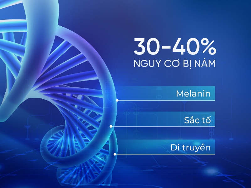 Theo các nghiên cứu da liễu hiện đại, yếu tố di truyền ảnh hưởng đến cơ địa sắc tố và phản ứng của da với các yếu tố môi trường như ánh nắng, hormone, stress hoặc viêm. Những người có tiền sử gia đình bị nám thường: