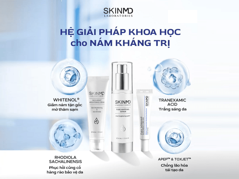 Nám kháng trị không còn là nỗi lo nếu chúng ta hiểu đúng: Muốn điều trị bền lâu, cần bắt đầu với nền tảng là một làn da khỏe mạnh. Hệ giải pháp khoa học SkinMD là lựa chọn toàn diện – kết hợp phục hồi, trị nám tận gốc, tái tạo cấu trúc và chống lão hóa – với thành phần đã được kiểm chứng hiệu quả như 4-n‑butylresorcinol và Tranexamic Acid.