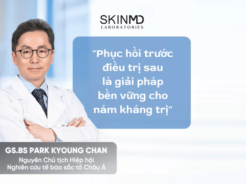 Bạn có biết tại sao nám kháng trị cần phục hồi trước điều trị sau? Theo GS.BS Park Kyoung Chan – nguyên Chủ tịch Hiệp hội Nghiên cứu Tế bào Sắc tố Châu Á – thì: “Một làn da khỏe mạnh chính là điều kiện tiên quyết để trị nám kháng trị thành công.” Điều này cho thấy, để loại bỏ nám thật bền, ta cần trước hết phục hồi và củng cố hàng rào bảo vệ da; khi da đủ mạnh, các hoạt chất mạnh mới phát huy tác dụng hiệu quả và lâu dài.
