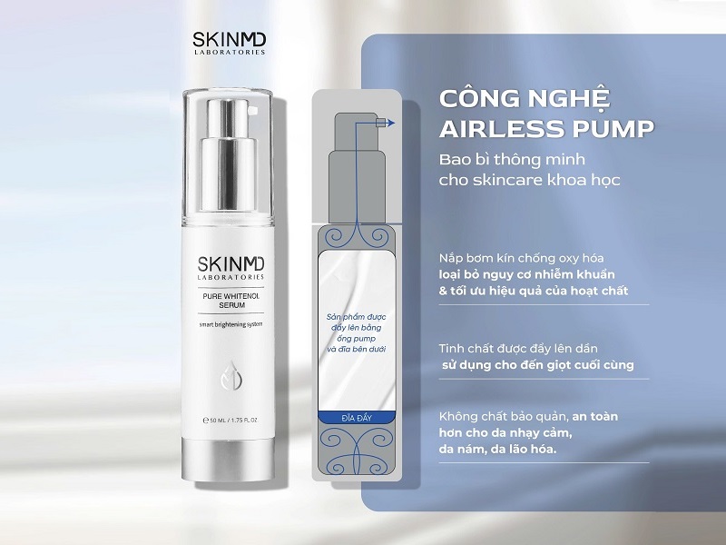 Việc sử dụng Airless Pump trong SkinMD Pure Whitenol Serum không chỉ là câu chuyện kỹ thuật mà còn có ảnh hưởng trực tiếp đến kết quả điều trị nám của người dùng.